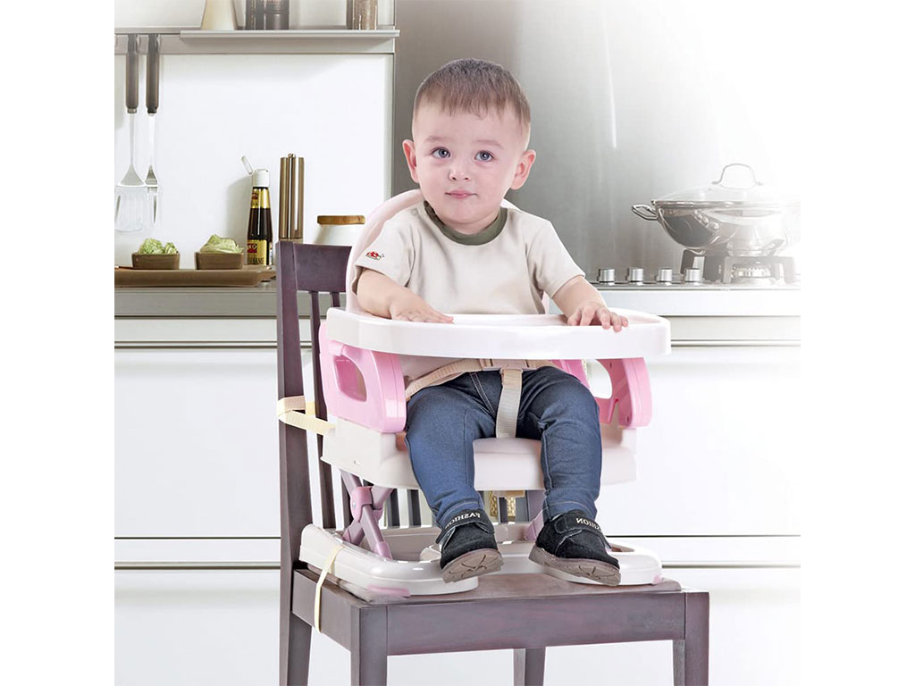 صندلی غذا پرتابل mastela مدل BOOSTER ماستلا قابل استفاده برای نوزادان 6 ماه تا 4 سال است و حداکثر وزن قابل تحمل آن تا 18 کیلوگرم می باشد