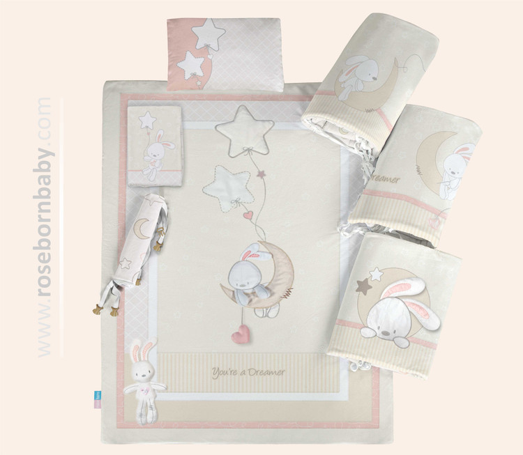 سرویس خواب هفت تکه نوزاد برند roseborn برای قرار گرفتن و نـصب روی تــخت نوزاد طـراحی شـده و جهت محافظت از کودک شما، دارای سه محافظ (گارد) برای نصب دور تا دور تخت می باشدهمچنین وجود بالش و روبالشی، لحاف و ملحفه، خواب آسوده ای برای کودک شما فراهم می آورد.