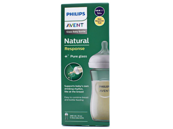 شیشه شیر 240 میل پیرکس، نچرال، ریسپانس، جنس بطری ساخته شده از شیشه بوروسیلیکات مقاوم در برابر حرارت و شوک های ضربه ای و حرارتی، سرشیشه این محصول از نوع نچرال ریسپانس، ساخته شده از سیلیکون 100 درصد طبیعی نچرال، مجهز به دریچه ضد کولیک، طراحی آرگونومیک خوش دست در هر زاویه، تقلید و شبیه سازی سینه طبیعی مادر، سیستم ضد ریزش و ضد چکه، ساخت کمپانی فیلیپس اونت، کشور مبدا: هلند.